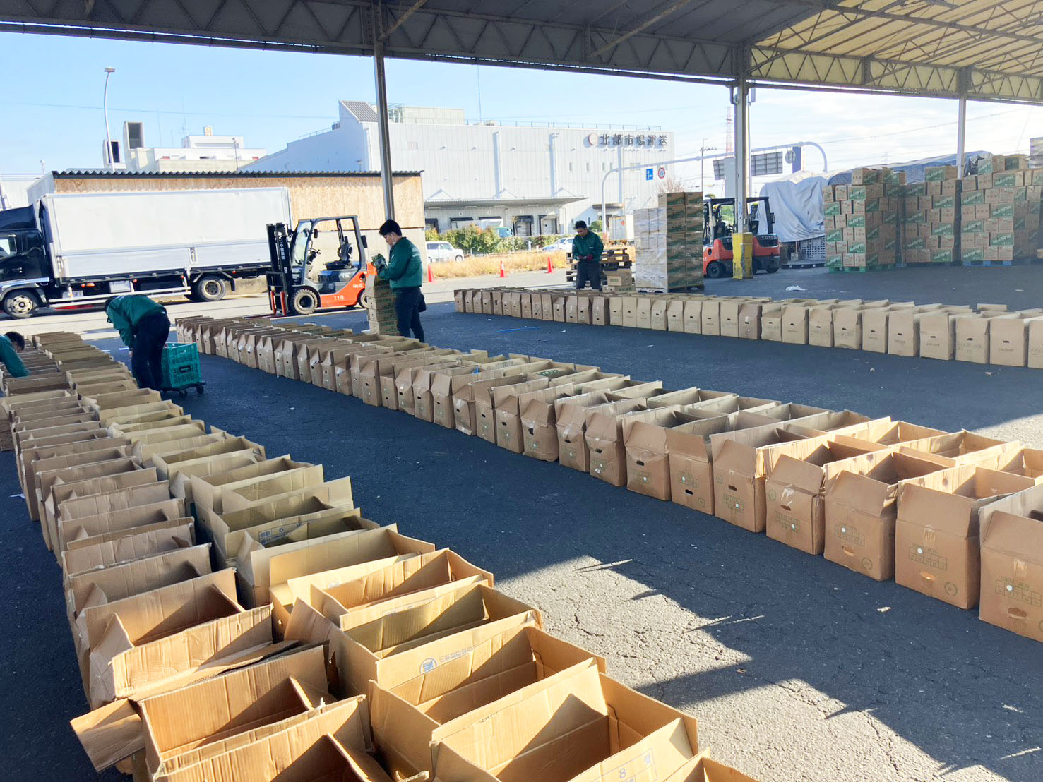 箱詰め作業を担ってくださったのは、業務部を中心とする従業員の方々です。