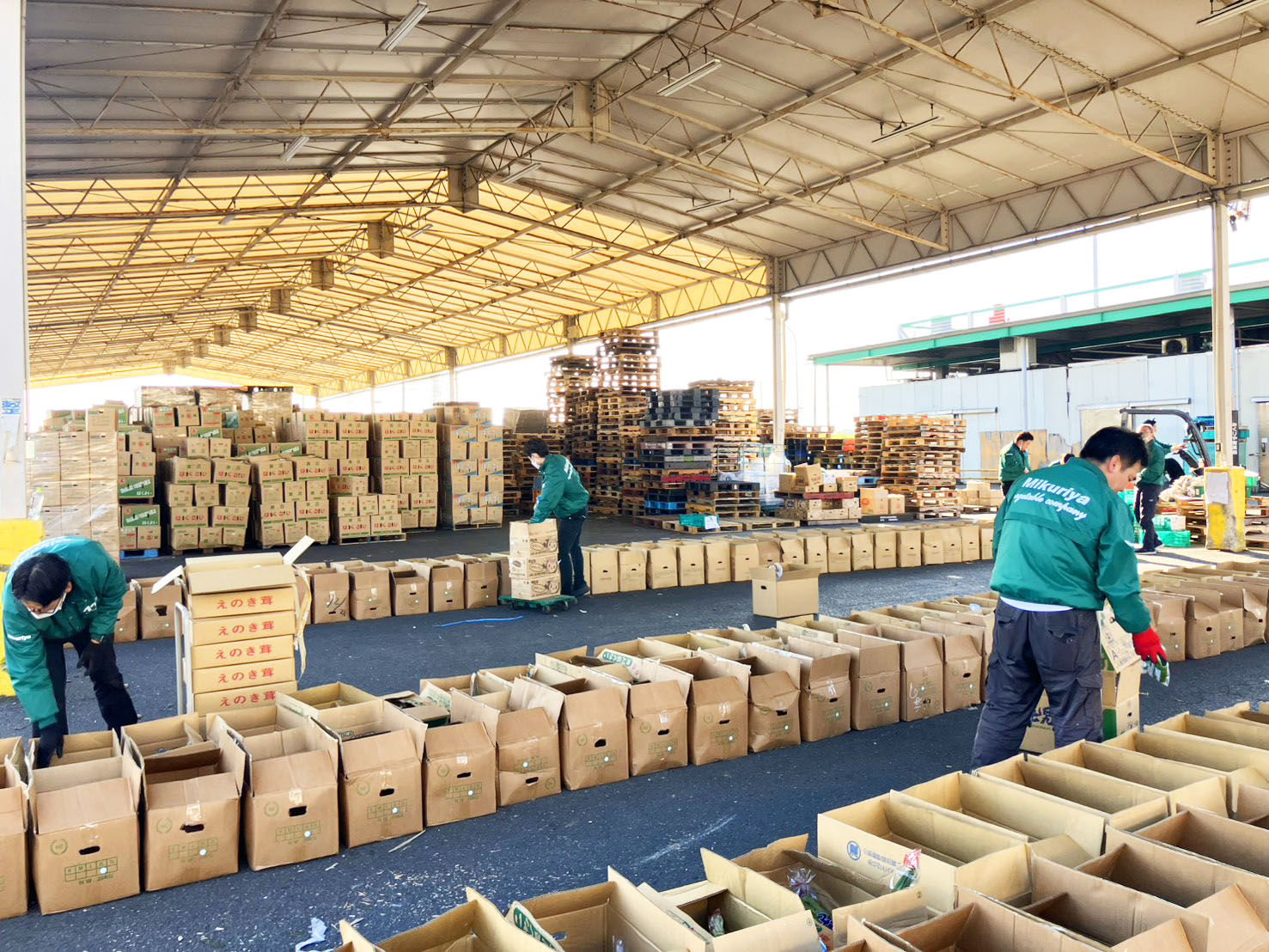 年末の多忙な業務と並行しながら、一つひとつの野菜の状態を確認し、丁寧に、真心を込めて箱に詰めていく姿がありました。