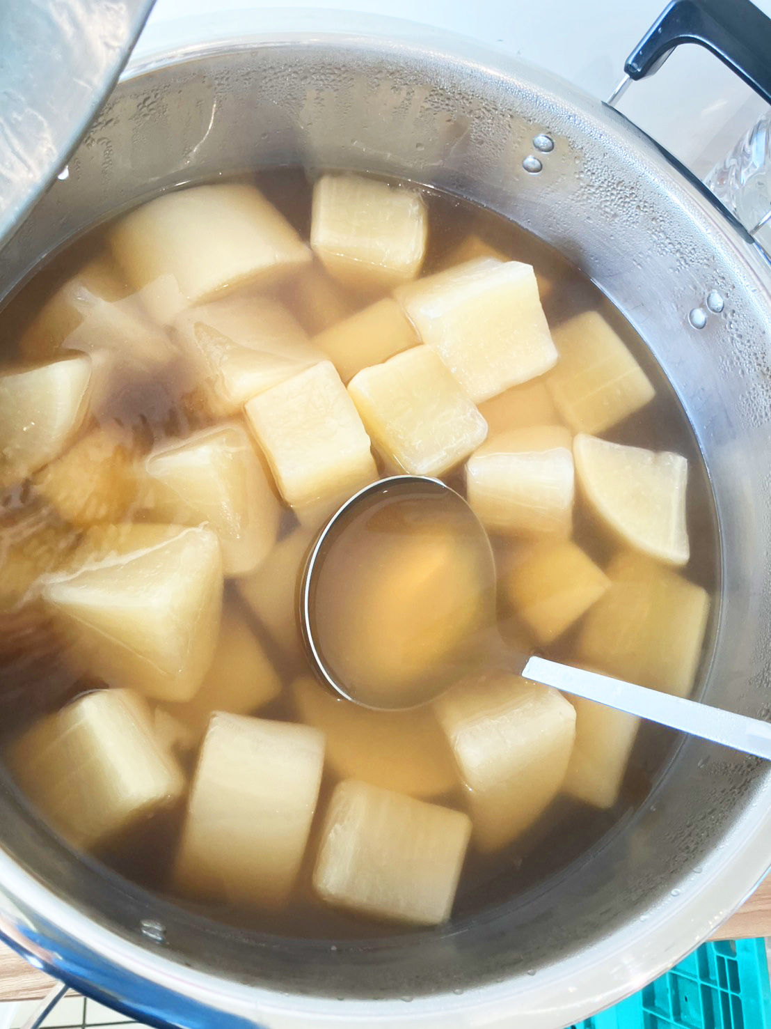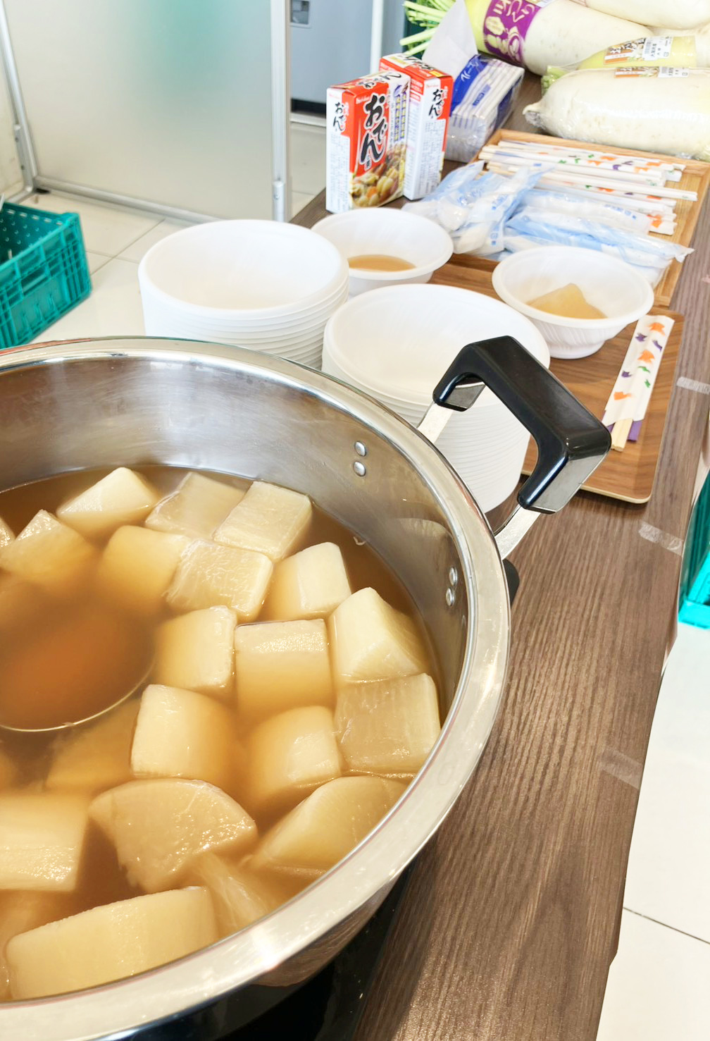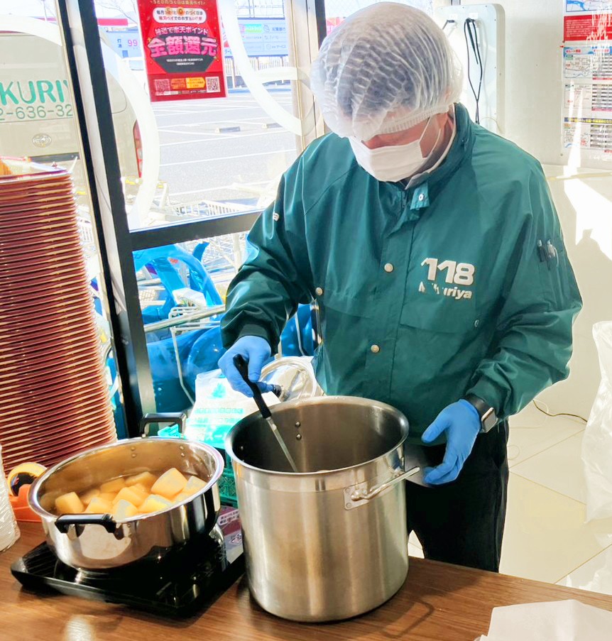 試食用のおでん大根は前日から仕込みを行い、開店と同時に提供できるよう準備を整えました。