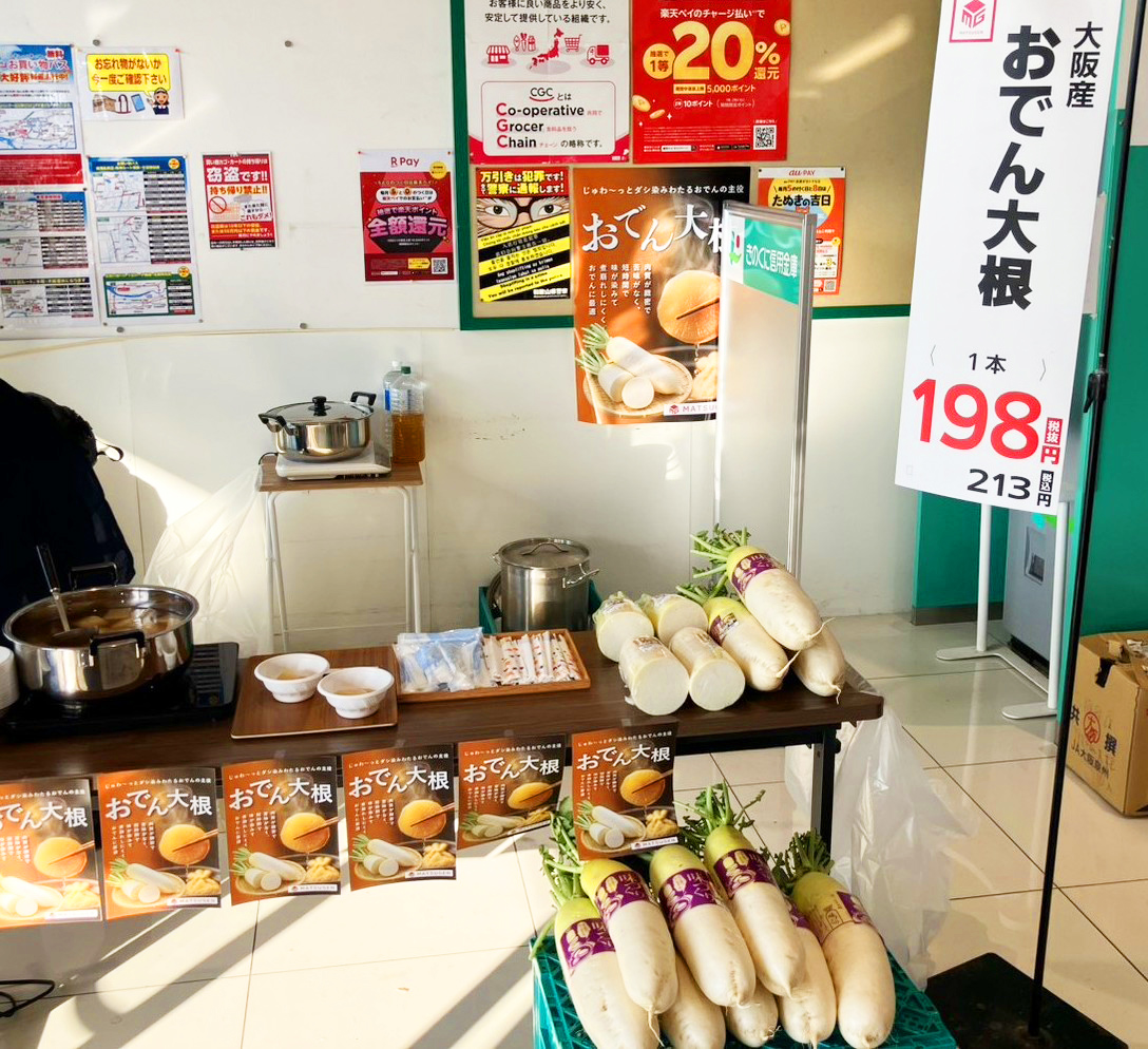 2026年1月17日(土)、みくりや青果の取り組みの一環として、和歌山県内の大手スーパーマーケット様の店舗にて「おでん大根」の試食会を開催いたしました。